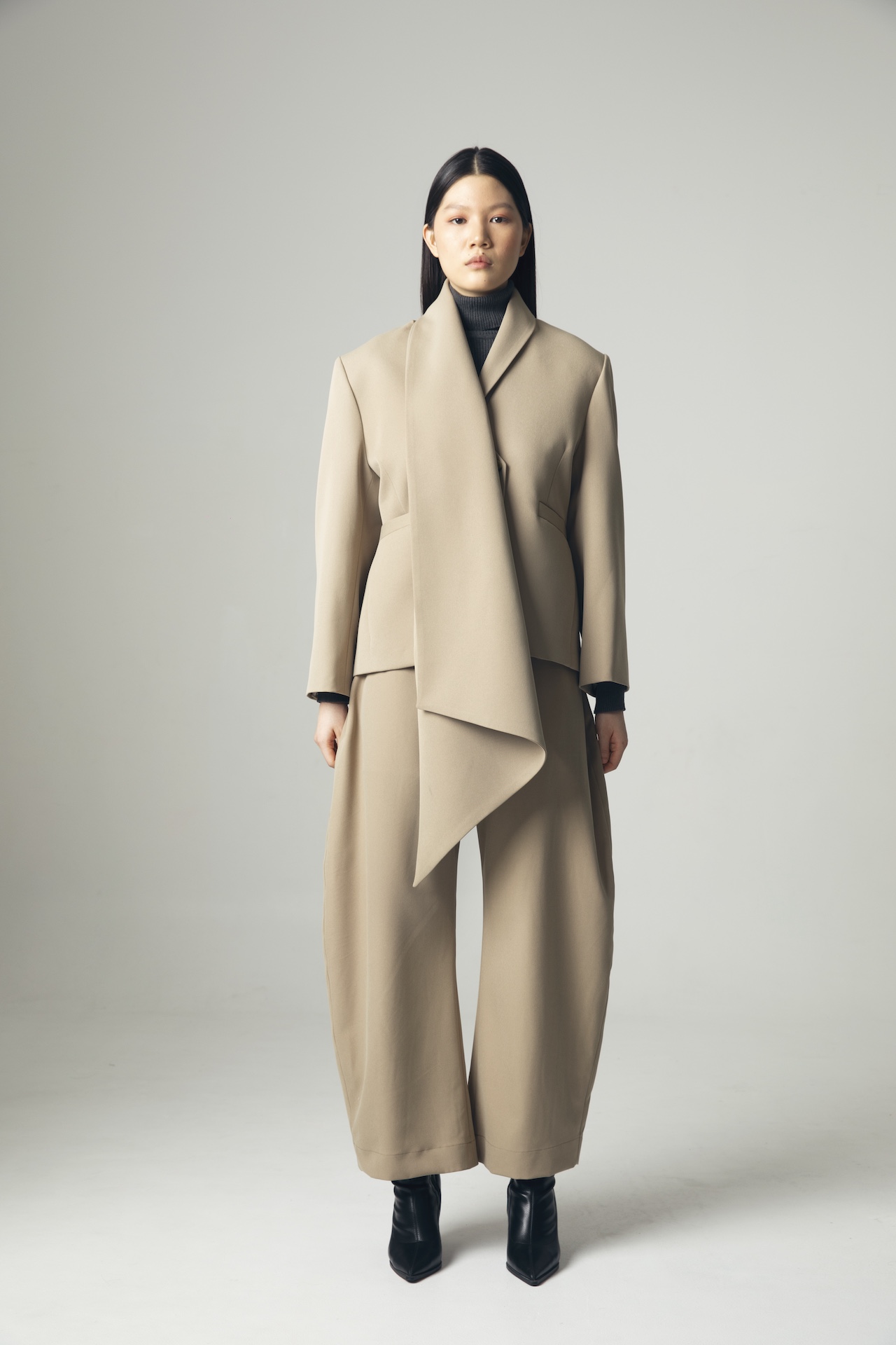 OFFERING A TAILORED YET VOLUMINOUS SILHOUETTE.