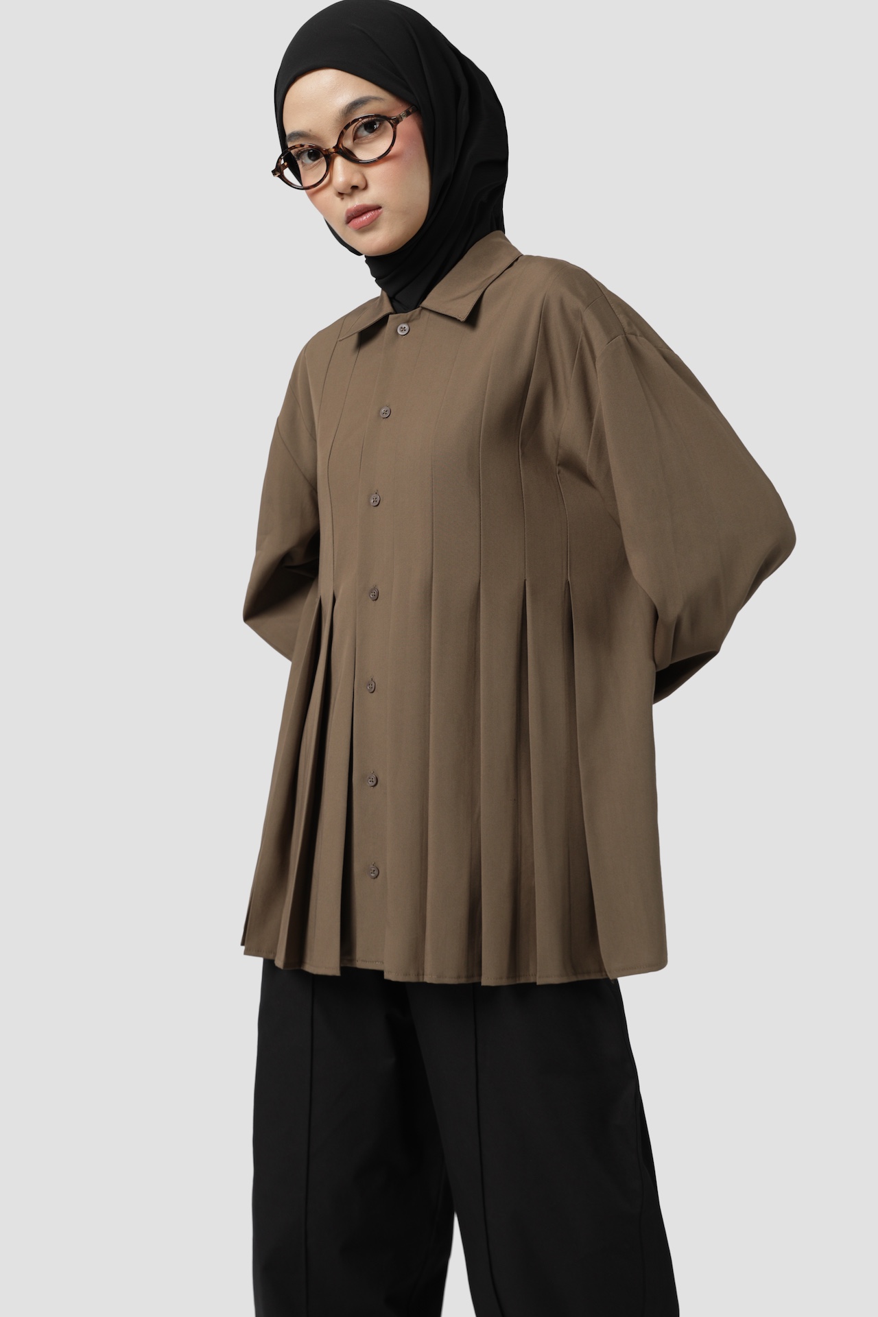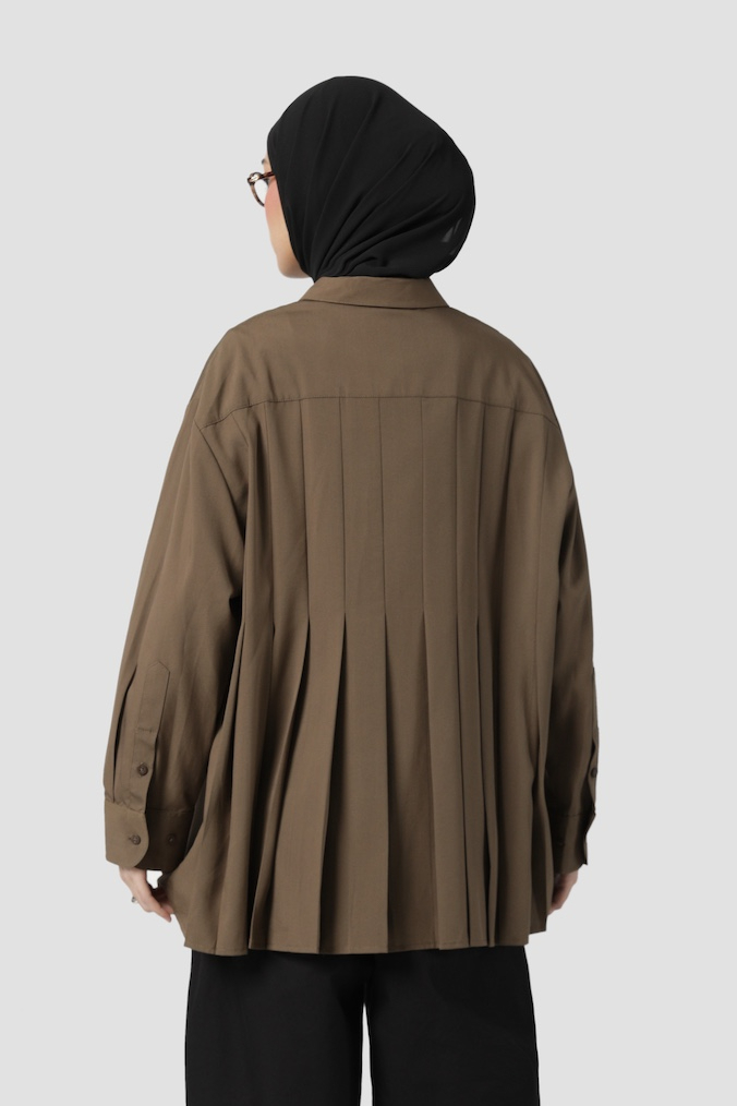 Loose-fit shirt with pleated details around the edges. Made from comfortable Modal fabric that is cool against the skin and has a very smooth texture. Wide and flowy bottom, suitable for various body types. Classic shirt collar, cuffs with buttons. Easy to care for and easy to iron.