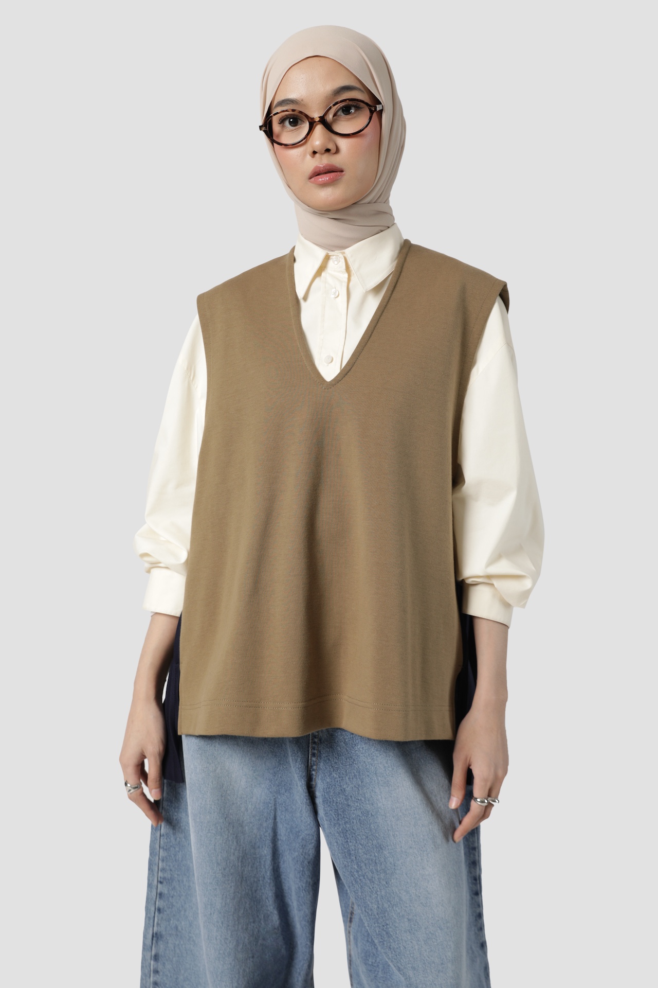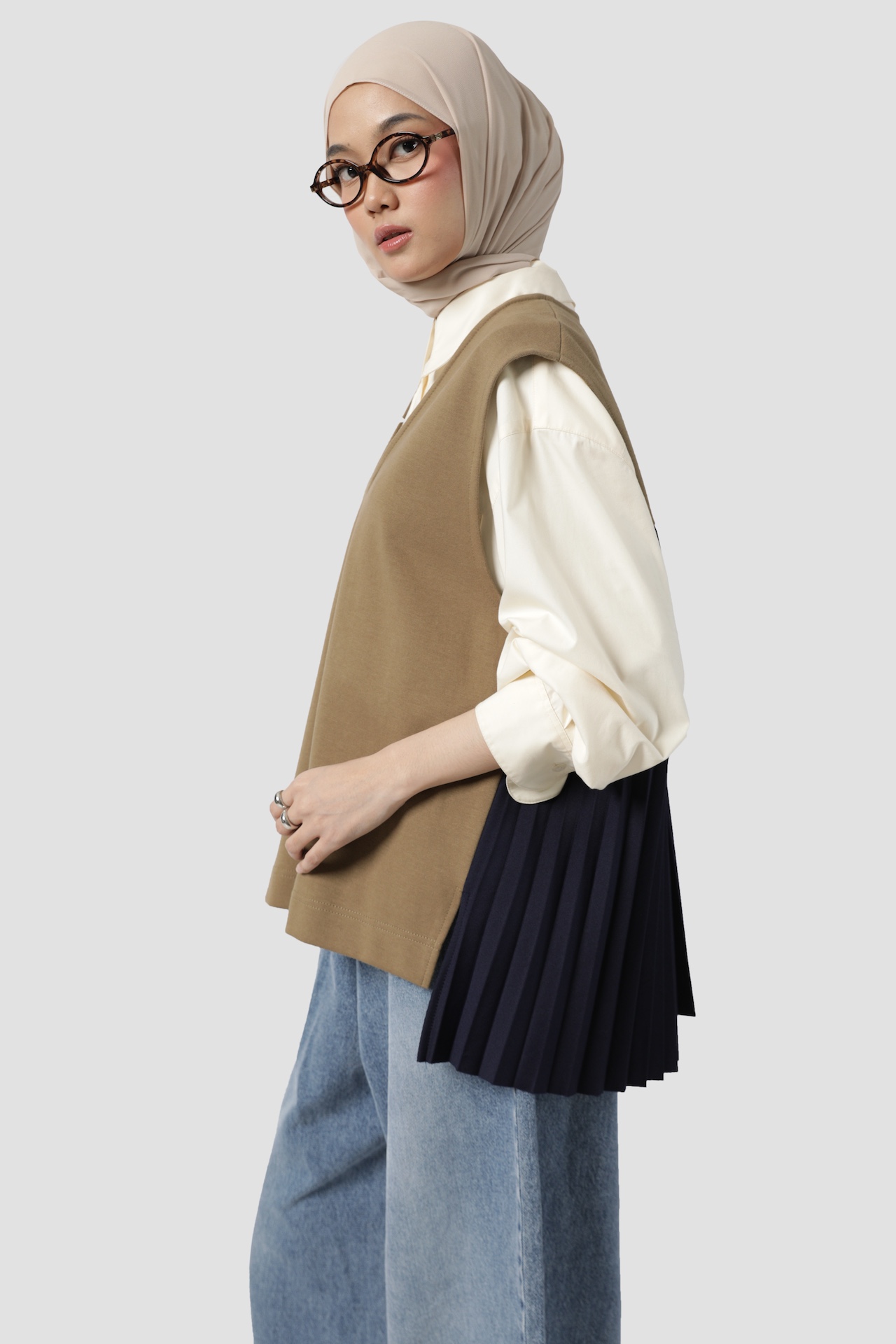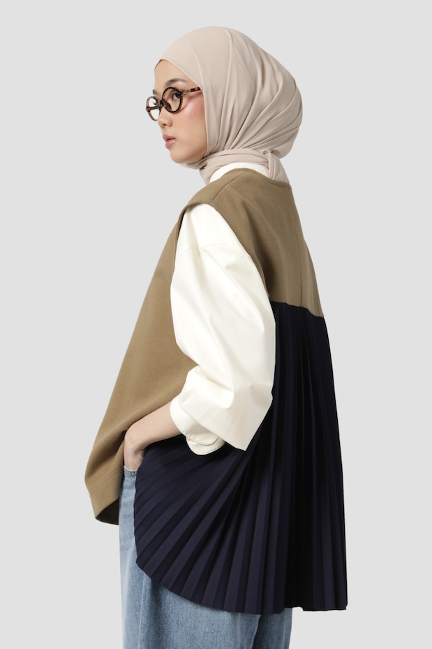 PLEATED VEST KHAKI NAVY