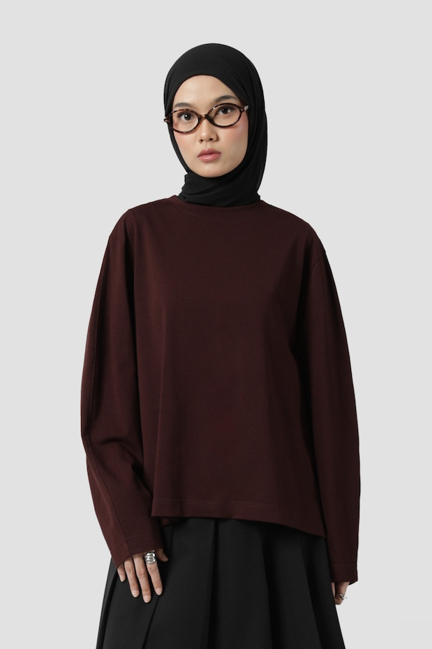 ROUNDED SLEEVE T SHIRT DEEP MAROON