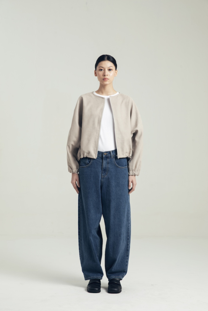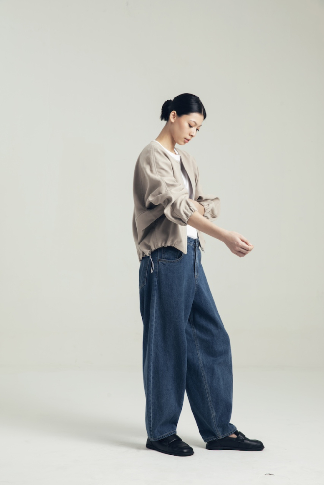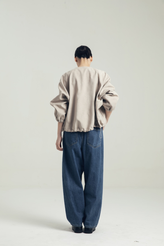 SUEDE POLYESTER OUTER IN FLINT GRAY BEIGE WITH DRAWSTRING DETAILS