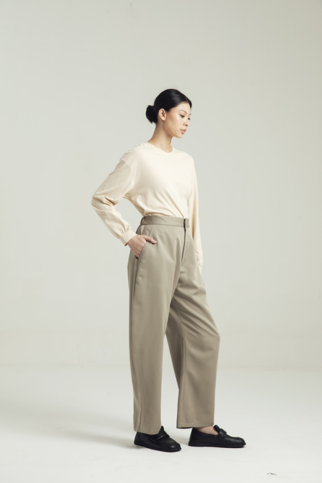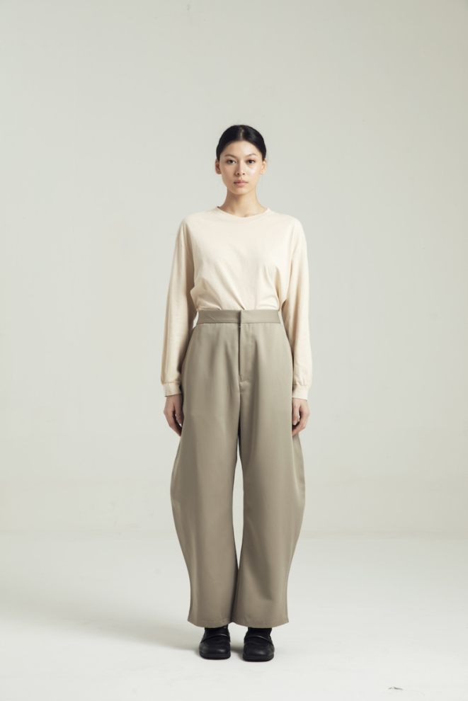 WIDE-LEG SEMI HIGH RISE COTTON TWILL TROUSERS