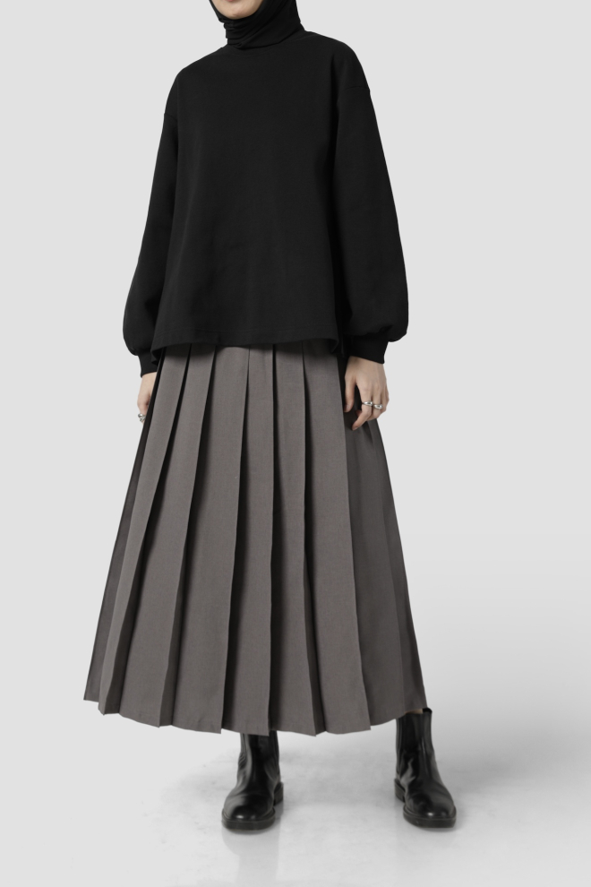 SEWN PLEATED SKIRT GREY